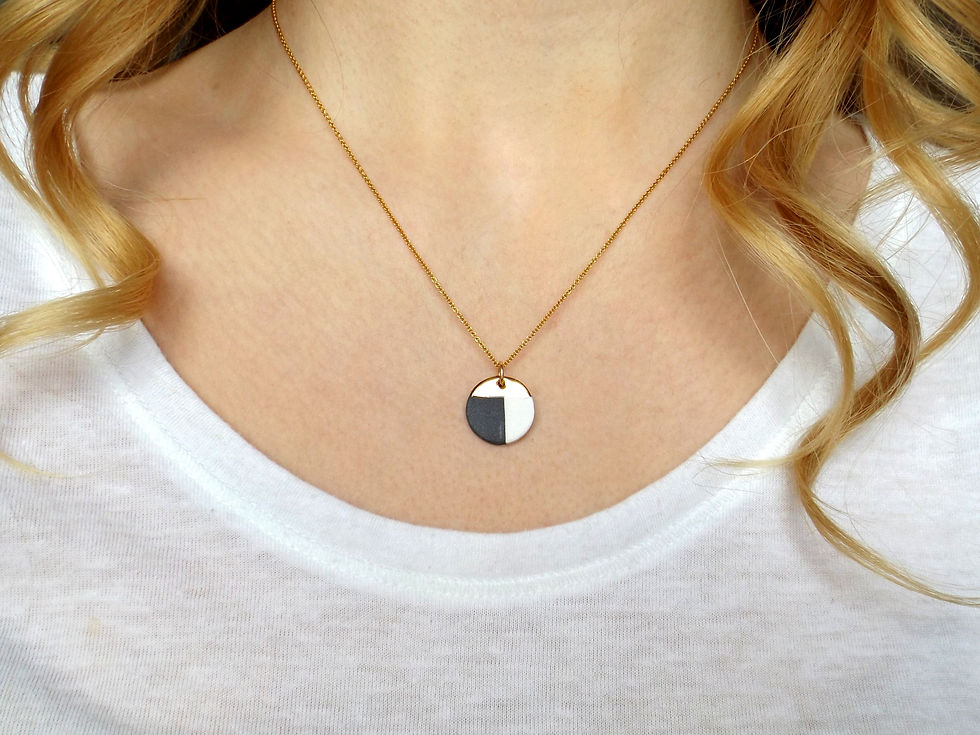 'Monochrome and Gold' Disk, Porcelain Necklace.